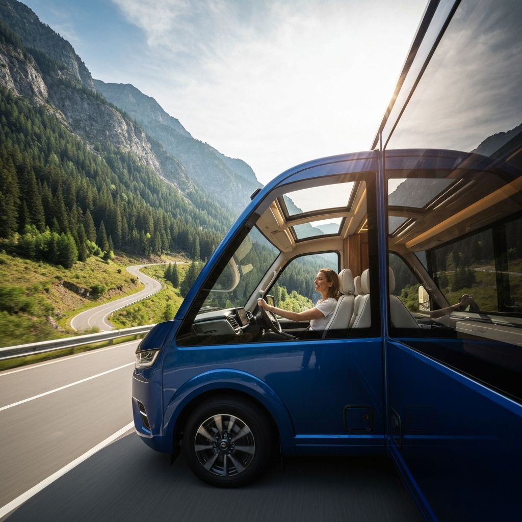 Panoramic AR windshields, quantum-cask whiskey lounge, shape-shifting interiors. Perfect for cross-country adventures and off-grid luxury.